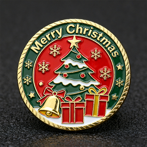 חם מכירת פסטיבל קישוט מטבעות סיטונאי 3D מתכת אמנות אמייל אתגר מטבעות עץ חג המולד מתנה מטבע מותאם אישית מטבע חג המולד