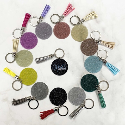 Mới Hot long lanh Acrylic Móc khóa bán buôn trống vòng đầy màu sắc tua Keyring biểu tượng tùy chỉnh nhựa trống Acrylic Keychain